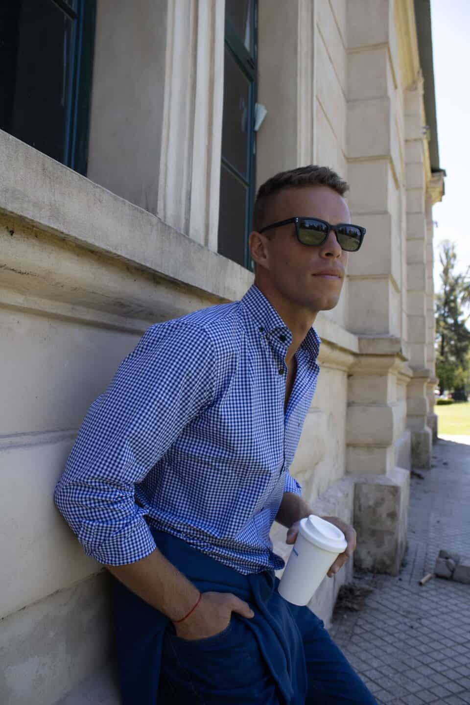 Camisa cuadros celeste 100% algodón