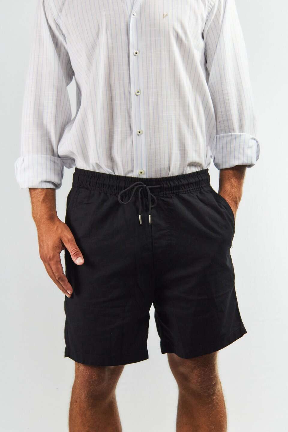 Bermuda negra de lino y algodón