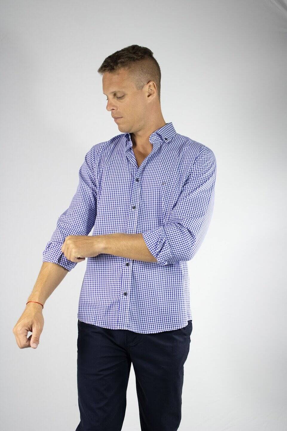 Camisa cuadro 100% algodón azul de hombre. Un diseño cómodo, liviano y versátil, ideal para lograr un look casual elegante en cualquier ocasión y cualquier época del año.