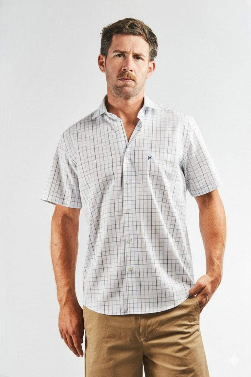 Camisa de lino y algodón a cuadros manga corta – Tu prenda del verano