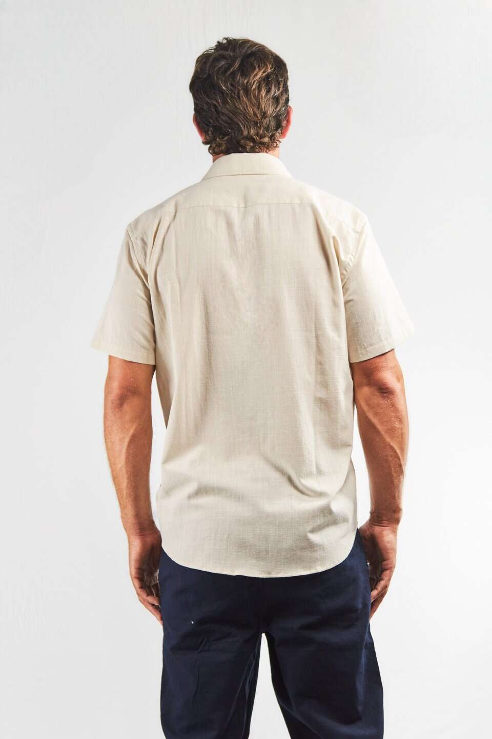 El color beige claro es fácil de combinar: con shorts de baño, chinos beige, bermudas blancas o jean denim. Funciona igual de bien en looks casual que smart-casual. El lino aporta textura y caída natural; el algodón suma suavidad y reduce arrugas → resultado impecable desde la mañana hasta la noche. Resultado: elegancia sin esfuerzo.
