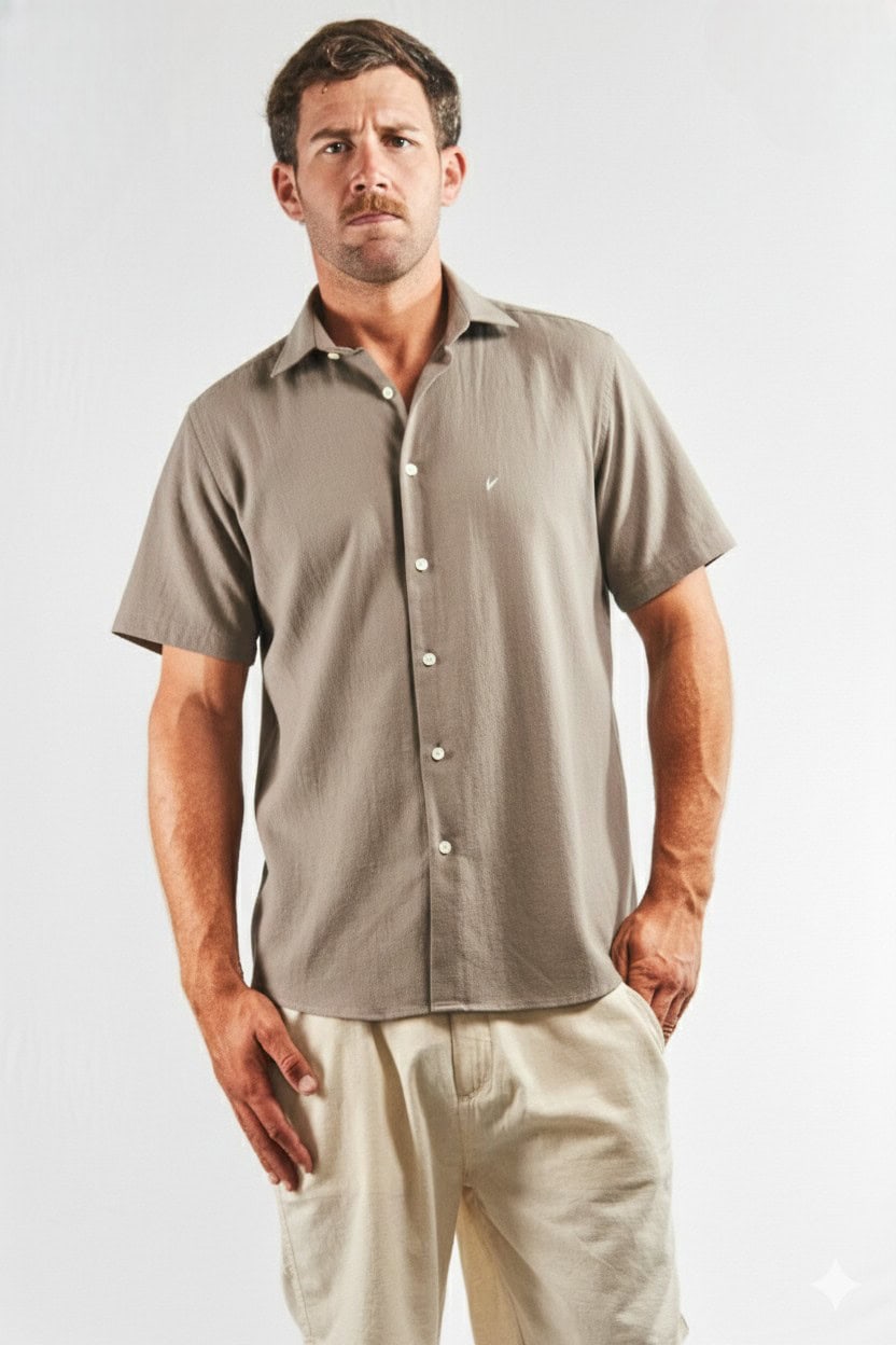 Descubre la máxima comodidad y estilo con nuestra camisa de hombre de lino y algodón manga corta visón. El tejido mezcla lo mejor de ambos mundos: la frescura y transpirabilidad del lino con la suavidad y resistencia del algodón. Elegancia con toque veraniego al momento de elegir la camisa de lino y algodón blanca manga corta. Podes encontrar la misma camisa en varios colores.