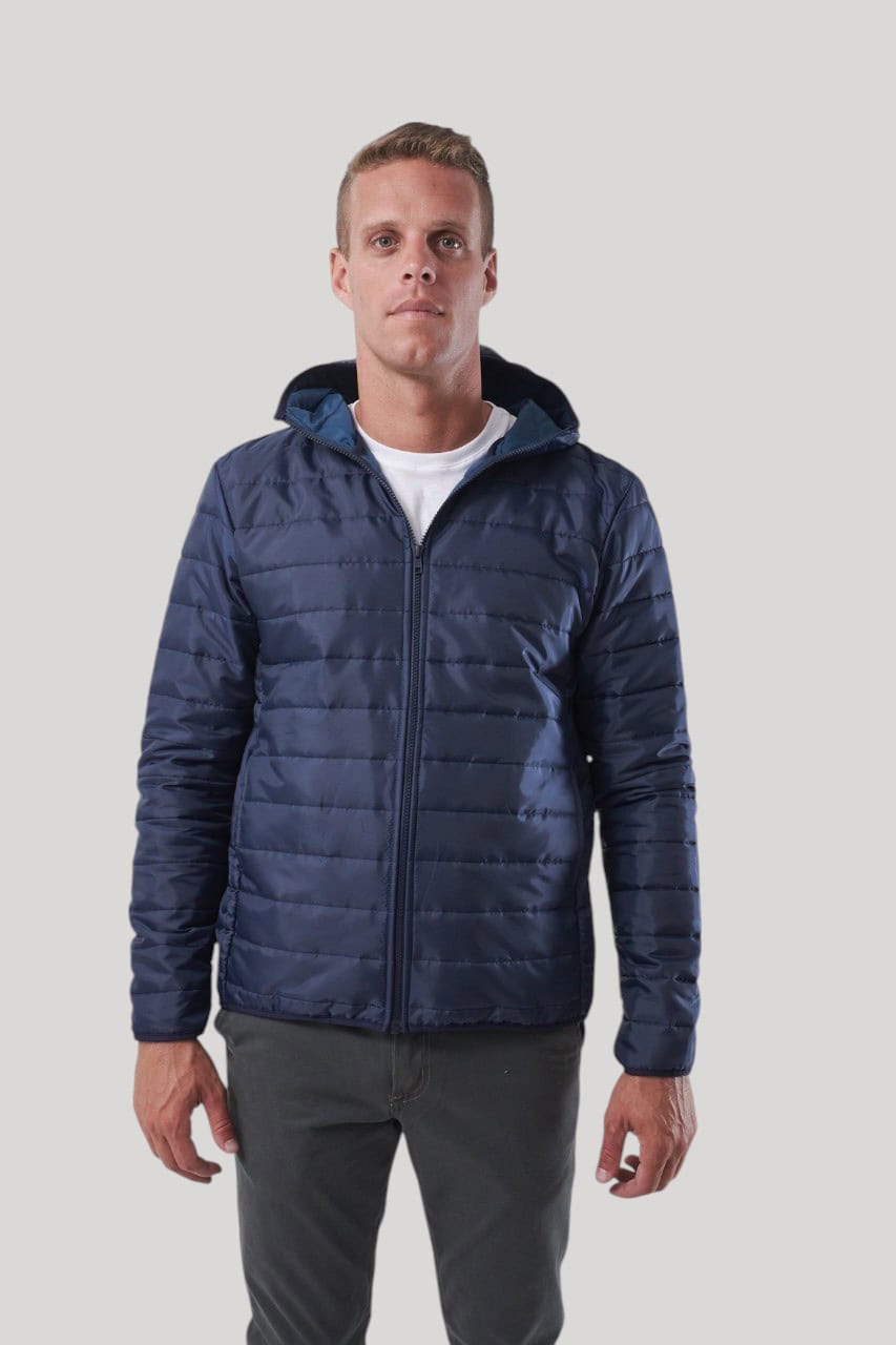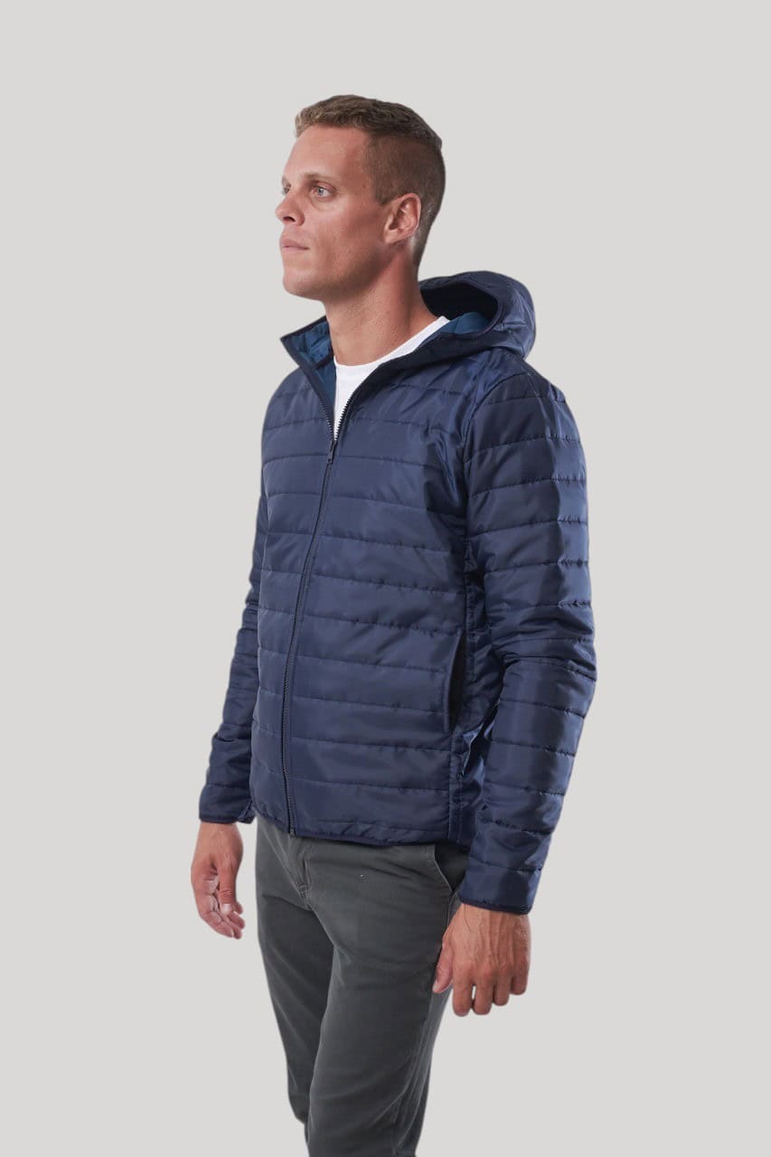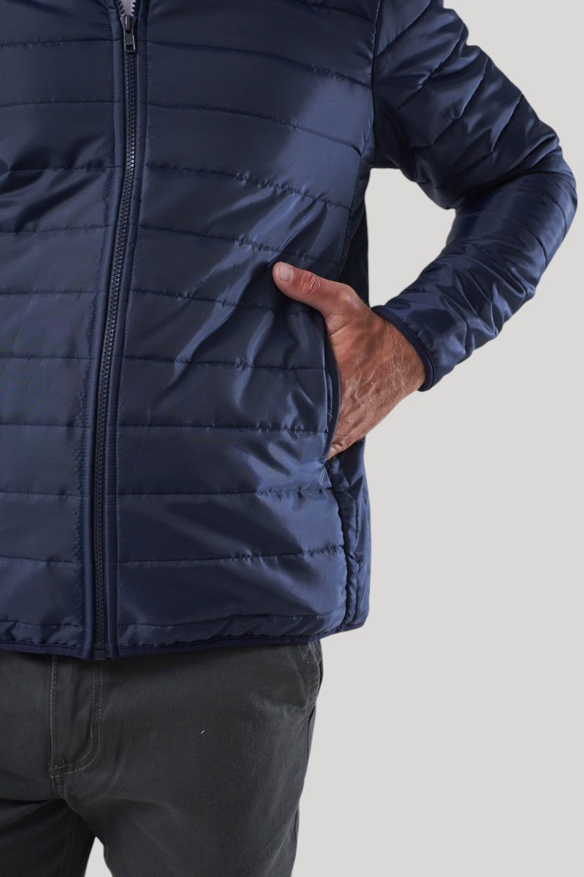 La campera inflo matelasse marino es ideal para el uso diario completando tu outfit con un sweater, camisa y jean o pantalón chino.