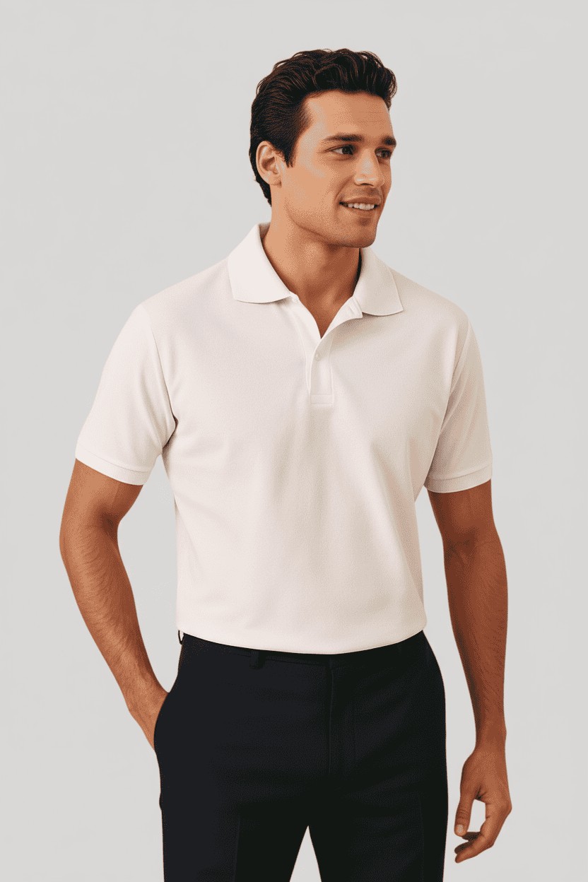 La Chomba pique blanca Ricky es de calidad pique 24/1 80%algodón 20% poliéster, corte regular, cuello y puños tejidos.