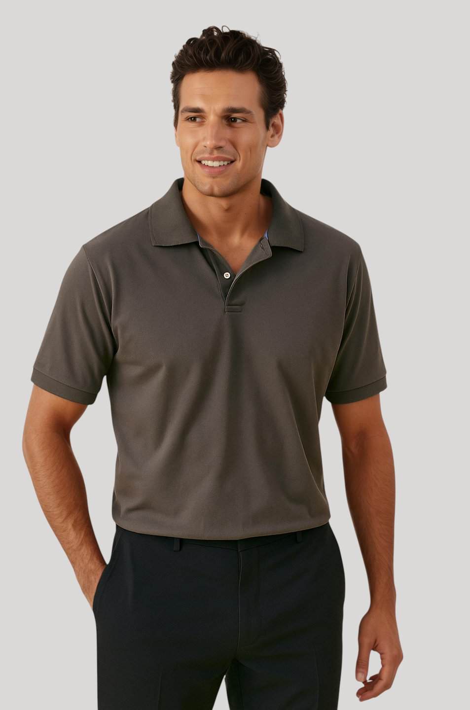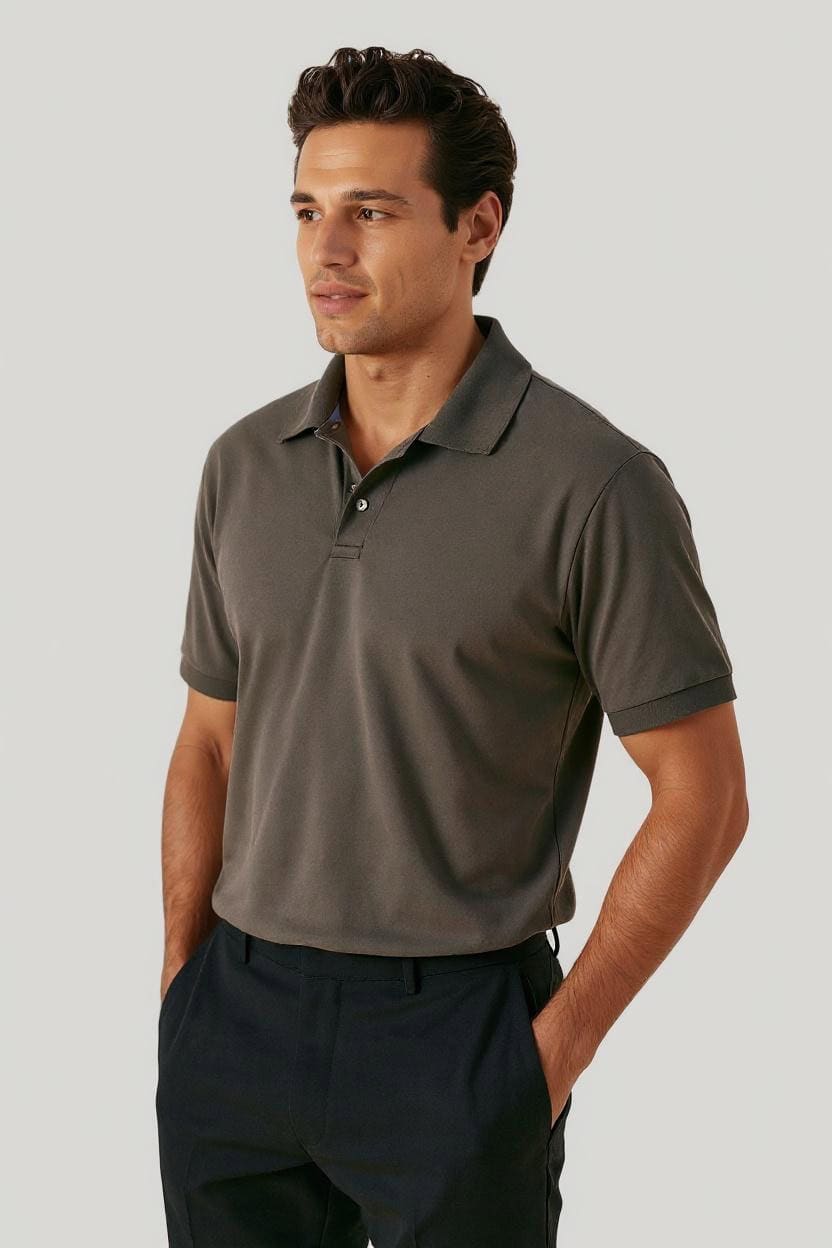 La chomba pique gris topo Ricky es de calidad pique 24/1 80%algodón 20% poliéster, corte regular, cuello y puños tejidos.
