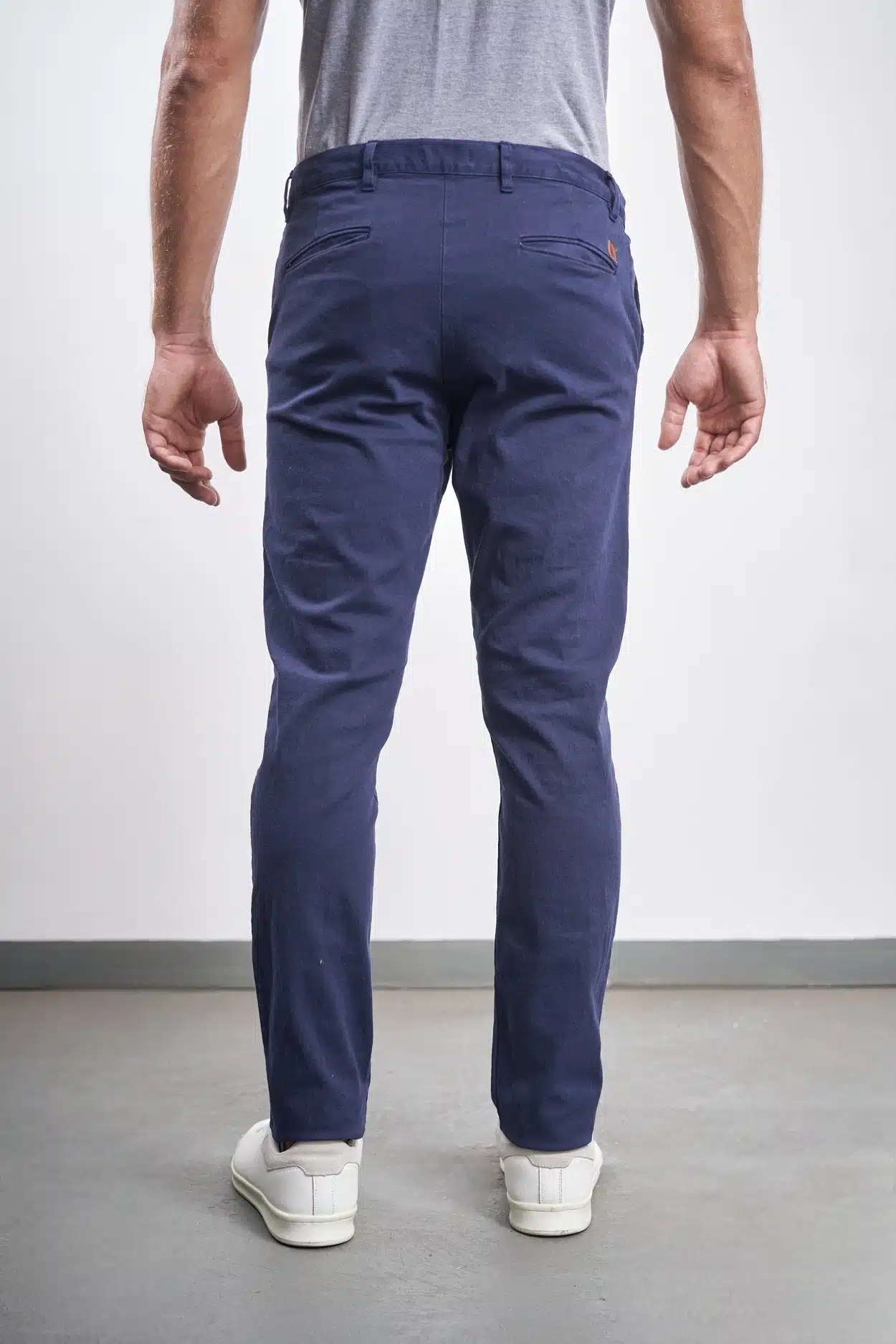 - Calce: slim fit de corte estándar con cinco bolsillos.