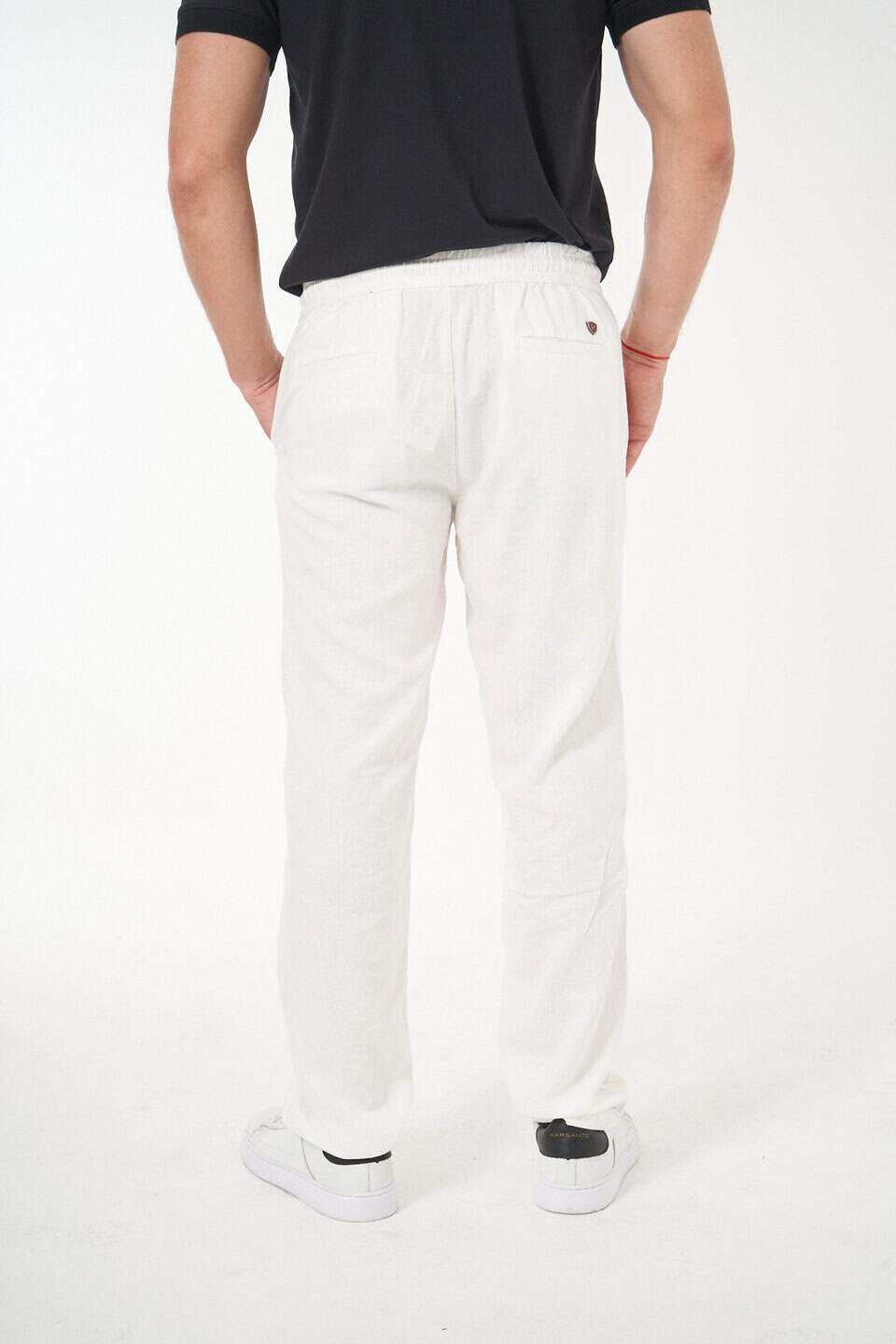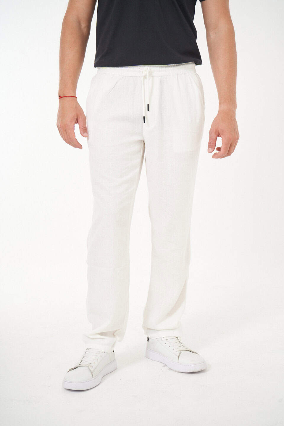 La calidad del pantalón de lino blanco Jogger es 45% lino, 55% algodón.