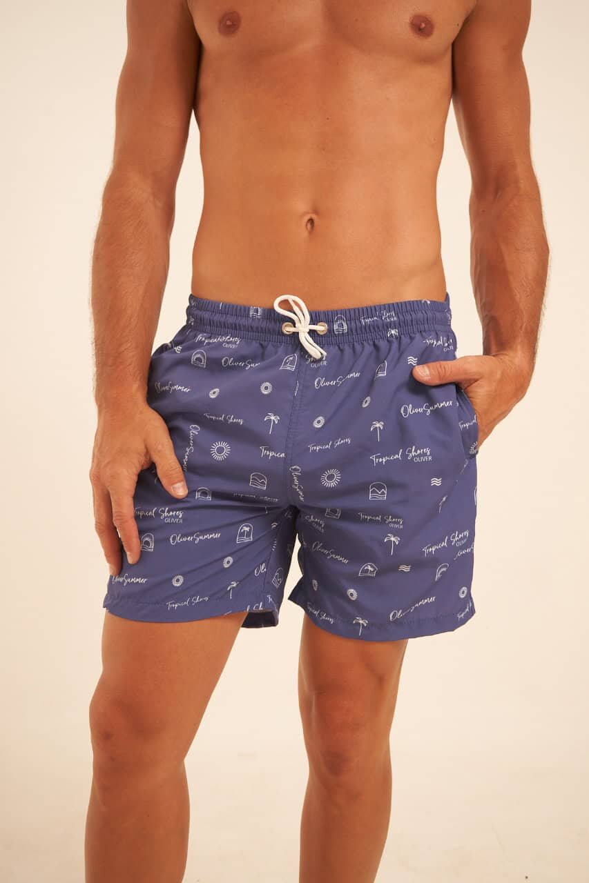 Short de baño azul estampado